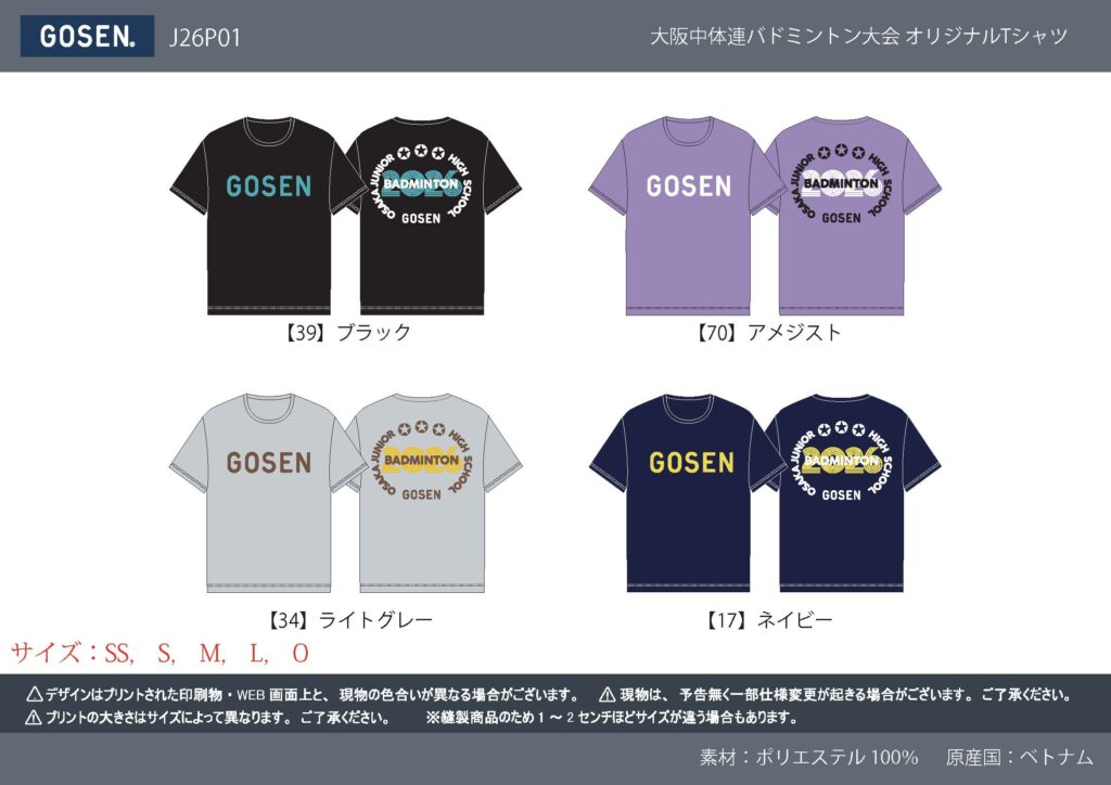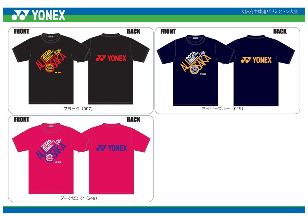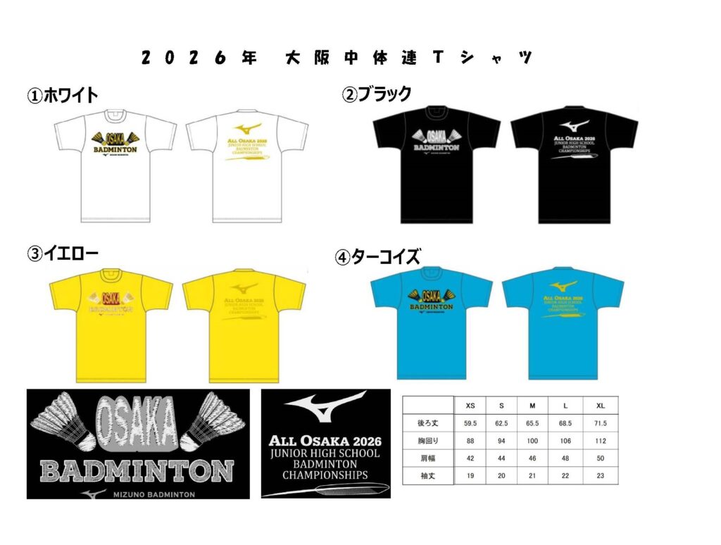 2026年度大阪府中学校バドミントン大会記念Tシャツの予約受注を開始させて頂きます。