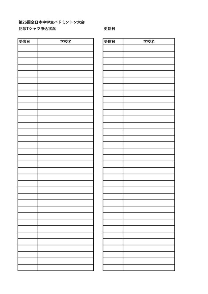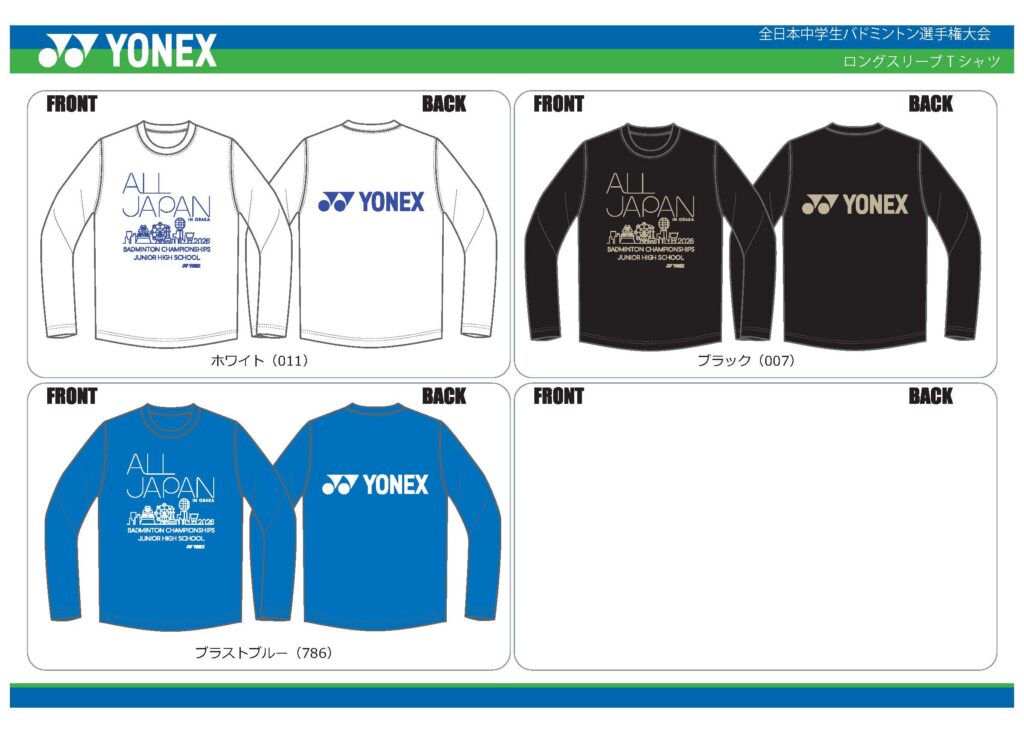 第26回全日本中学生バドミントン選手権大会の大会記念TシャツおよびロングTシャツの予約販売を弊社にて承ります。